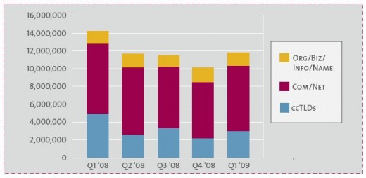 In het eerste kwartaal van 2009 is de wereldwijde groei van het aantal domeinnamen weer toegenomen sinds een jaar. In het eerste kwartaal van 2008 werden er 11,8 miljoen nieuwe domeinnamen geregistreerd. In vergelijking met het vierde kwartaal van 2008 is het aantal domeinnamen met 17% gegroeid, relatief gezien is de groei echter met 17% afgenomen. Totaal kwam het aantal domeinnamen uit op 183 miljoen.