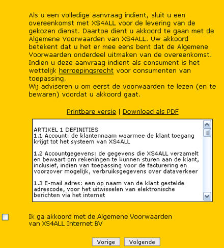 Om bovengenoemde iets sprekender te maken zal ik de terbeschikkingstelling van de algemene voorwaarden van zowel XS4ALL als Planet Internet toetsen.