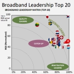 Broadband Quality ScoreIn bijna alle landen is de kwaliteit van breedbandinternet het afgelopen jaar verbeterd, ondanks de economisch zware tijden. Niet alleen zijn de up- en downloadsnelheden gestegen, ook is de kwaliteit van breedbanddiensten voor consumenten toegenomen.