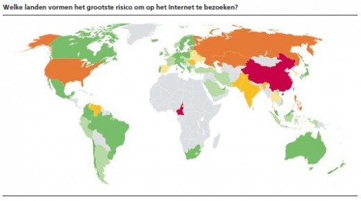 .cm-domeinnamen van Kameroen zijn het meest onveilig en worden op de voet gevolgd door .com-domeinnamen. Daarmee laat de meest gebruikte domeinextensie .cn (China), .ws (Samoa) en .info achter zich als het gaat om onveiligheid. De meest veilige domeinextensies zijn, .gov, .jp (Japan), .edu, .ie (Ierland) en .hr (Hongarije). De .nl domeinextensie scoort ook goed en is net iets minder veilig dan de veiligste domeinextensies. Dat blijkt uit het Mapping the Mal Web onderzoek (pdf) van McAfee.
