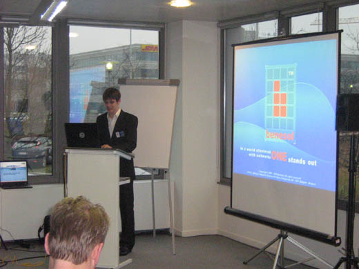 Voorafgaand aan de presentaties hield Samuel De Wever een introductie. Belgian Network Solutions is ongeveer 5 jaar geleden gestart als idee van Samuel. Het probleem was echter dat Samuel op dat moment 16 jaar oud was, en in tegen stelling tot Nederland is het dan vrijwel onmogelijk om een bedrijf te starten. Daarom vroeg Samuel zijn oudere broer Daan om het bedrijf voor hem te starten. Vanaf dat moment had Samuel zijn bedrijf en werd hij ondersteund door zijn oudere broer Daan en CTO Geert Hauwaerts, met zijn drieen maken zij tot de dag van het vandaag de directie uit.