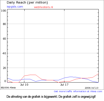 Toen ik echter met behulp van Alexaholic de alexa statistieken van ISPGids.com tegen die van webhosters.nl aanlegde viel me iets vreemds op. Ondanks dat ISPGids.com nog duidelijk de underdog is, zitten de statistieken toch tegen elkaar aan en is ISPGids.com iets stabieler en heeft webhosters.nl wat meer hoge pieken en scherpe dalingen, waardoor ISPGids.com een groter bereik heeft.