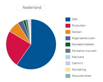 De meeste spamberichten bestaan uit zogeheten bezorgingsstatusberichten, ook wel DSN’s (Delivery Status Notification) of NDR’s (Non-Delivery Receipts) genoemd. In Nederland is dat beeld niet anders.