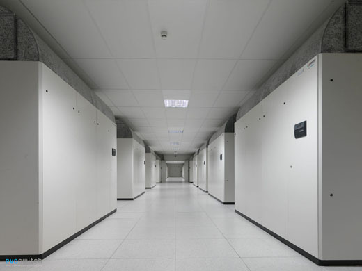 Met de tweede fase van de ontwikkeling van het EvoSwitch datacentrum is men intussen een driekwart jaar bezig. Dit deel van het datacentrum is zo goed als klaar, de racks die uiteraard ook in Cold-Corridor opstelling zijn geplaatst zijn klaar, waardoor binnenkort de datavloer daadwerkelijk in gebruik zal worden genomen door klanten. Indrukwekkend was het om op zo’n enorme datavloer te staan, vol met racks, maar waar doodse stilte heerste.