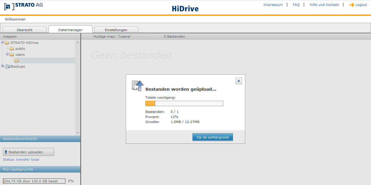 Voor HiDrive hoeft geen software te worden geïnstalleerd. Bestanden kunnen via de browser of met een ftp-programma worden geüpload.