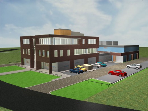 Het datacentrum zal er zo uit komen te zien, vooraan is het al bestaande BIT-2 datacentrum te zien (met daarboven de kantoren van BIT) en achter is de toekomstige uitbreiding bijgetekend.