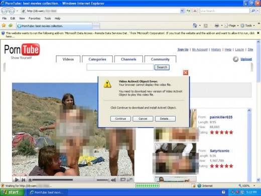 Een nieuw soort spam bevat links naar gehackte websites met daarop één en de zelfde niet bestaande PornoTube video, waarbij een waarschuwing wordt gegeven dat een bepaalde ActiveX video component moet worden geïnstalleerd om de bewuste video te kunnen bekijken. Wat de internetter installeert is natuurlijk geen video component maar een trojan, die zodra geïnstalleerd er voor zorgt dat de geïnfecteerde machine zelf ook de bewuste spam gaat rondsturen.