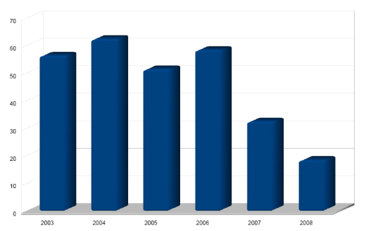 Groei dataverkeer 2003 – 2008 (meetperiode juli tot en met juni)