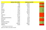HP spant in het overzicht de kroon met een verlies van 39 procent in een heel jaar. De aandeelhouders hebben het bedrijf kennelijk afgerekend op de bestuurlijke problemen waarmee het te kampen had. Afgelopen najaar werd topman Leo Apotheker naar huis gestuurd.