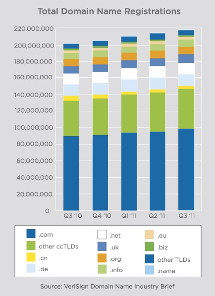 Van alle landenextensies is Duitsland (.de) nog altijd de grootste. Toch bedroeg de groei van het Duitse domein in 2011 slechts 5 procent en was het daarmee de kleinste groei van de TLD’s, aldus Hostnet. Ook de domeinnamen van Japan (.jp), Europa (.eu) en Denemarken (.dk) hebben – net als in 2010 – weinig groei doorgemaakt in 2011, constateert Hostnet.