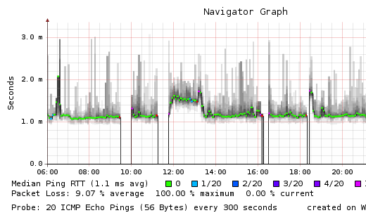 Internet Online had gisteren last van een viertal kortdurende storingen, waardoor het netwerk van Internet Online tijdelijk onbereikbaar was. De eerste storing vond plaatst van 9:30 tot 10:00 uur, de tweede van 11:15 tot 11:45 uur, de derde van 16:15 tot 16:30 uur en de vierde van 18:45 tot 18:55 uur. Totaal dus iets minder dan 1,5 uur downtime verspreid over de dag.