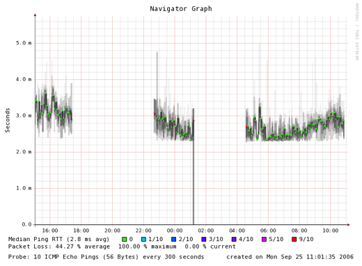 De volgende smokeping statistiek laat de gevolgen van de stroomstoring duidelijk zien: