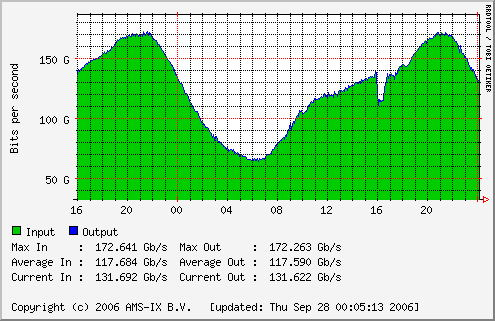 De stroomstoring in TelecityRedbus 3 had een duidelijk effect op de hoeveelheid traffic die er via de AMS-IX werd gedaan tussen 16:00 en 17:00 uur: