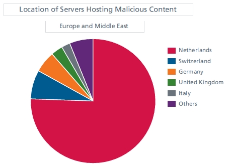 Nederland is een van de grootste hosters van malwaresites. De meeste malware draait niet meer in de VS, maar in de regio EMEA met een bijzondere koppositie voor Nederland.