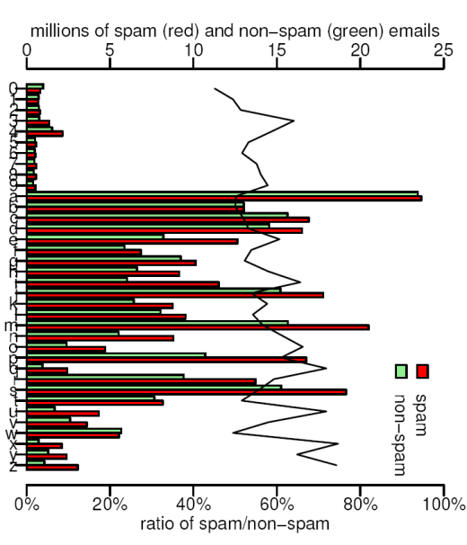 Op vrijwel elk denkbaar e-mail adres komt spam binnen, dat in de meeste gevallen uit de stroom met legitieme e-mail gefilterd wordt. Sommige mensen lijken echter meer spam te krijgen dan anderen en dat wordt vaak toegeschreven aan het later “slingeren” van je e-mail adres op internet. Echter uit een onderzoek (PDF) van Professor Richard Clayton van de Universiteit van Cambridge blijkt er ook een correlatie te bestaan tussen de hoeveelheid spam en de eerste letter van het e-mail adres waar de spam op binnen komt.