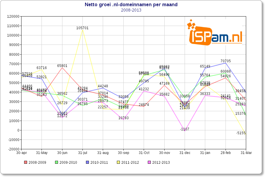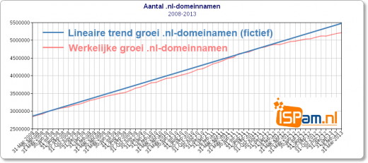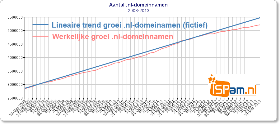 ISPam.nl - Aantal .nl-domeinnamen maart 2008 - maart 2013