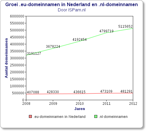 Het is vooral interessant te zien hoe persberichten over die groei bijna klakkeloos worden overgenomen. Want in 2011 zien we in serieuze media als Trouw een bericht met dezelfde strekking als in 2009. ,,Nederland is na Duitsland het EU-land waar het internetdomein .eu het meest wordt gebruikt. In ons land staan ruim 400.000 .eu-domeinnamen geregistreerd, ongeveer 13 procent van het totaal. Alleen Duitsland heeft er met ruim een miljoen registraties meer. Dat blijkt uit cijfers van de Europese Commissie.” Vergelijk dat eens met het bericht dat gisteren werd verspreid: ,,Nederland heeft in totaal ruim 486.000 .eu-domeinnamen geregistreerd. Daarmee is het het tweede land achter Duitsland dat 1,1 miljoen van dergelijke domeinnamen heeft geregistreerd”. Enige terughoudendheid over dat immens populaire .eu-domein lijkt gerechtvaardigd, na ruim acht jaar registratie.