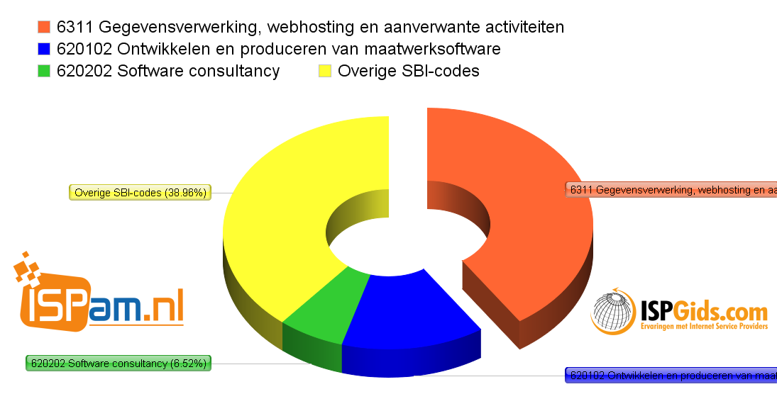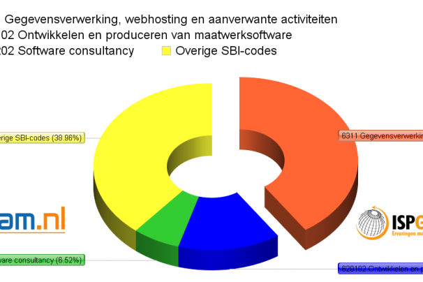 Voor ons onderzoek hebben we eerst van 675 webhosters die staan vermeld in ISPGids.com de SBI-codes waaronder deze staan geregistreerd bij de Kamer van Koophandel opgevraagd. Hieruit blijkt dat 370 webhosters (54,8%) geregistreerd staan onder SBI-code 6311 (gegevensverwerking, webhosting en aanverwante activiteiten), daarvan is in 274 gevallen (40,6%) dit de primaire SBI-code.