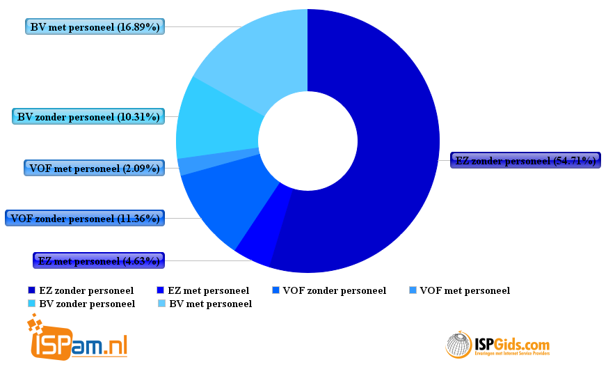De meeste webhosters hebben géén personeel in dienst. Dat blijkt uit eigen onderzoek van ISPam.nl op basis van gegevens van ISPGids.com en de Kamer van Koophandel. Niet geheel onverwacht, maar wel opvallend is het grote verschil tussen de verschillende rechtsvormen van webhosters.
