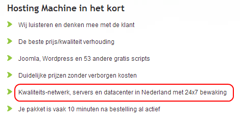 Een voorbeeld van een bedrijf dat op het oog volledig Nederlands is, is Hosting Machine. De website is volledig in de Nederlands taal. Onderaan de website staat een Nederlands adres en telefoonnummer. Verder staat op de website een ING- en iDEAL-logo. Ook in een nieuwsbericht uit 2011 op de website staat dat het bedrijf een nieuw kantoor heeft: “Op 23/05 zijn wij verhuist naar ons nieuwe kantoor. Busplein 36-38 1315 KV Almere.”