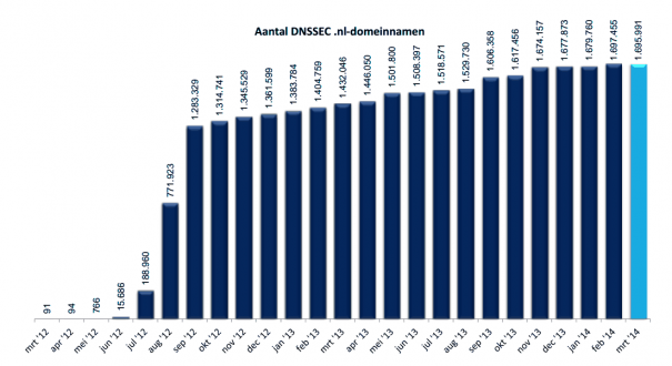 Ook daarna bleef het aantal gesigneerde .nl-domeinnamen gestaag groeien tot maar liefst 1.697.455 gesigneerde domeinnamen in februari 2014. In maart nam het aantal gesigneerde domeinnamen voor het eerst af, al is het zeer licht tot 1.695.991. Ook in de maanden ervoor valt het op dat de groei minder sterk was dan in het verleden.