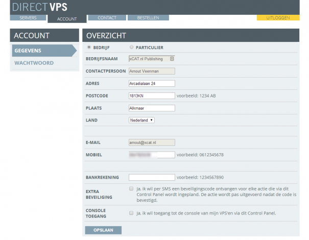 De administratieve kant van het controle paneel is redelijk. Binnen het controle paneel kan ik mijn gegevens aanpassen. Opvallend is dat niet alleen de bedrijfsnaam, contactpersoon én e-mailadres niet (zelf) kunnen worden aangepast. Wel mis ik ik een overzicht van contracten en facturen.