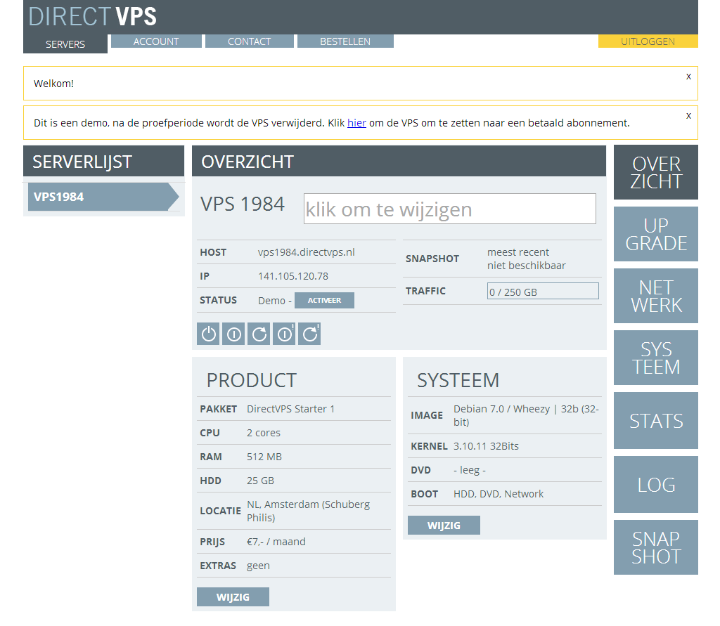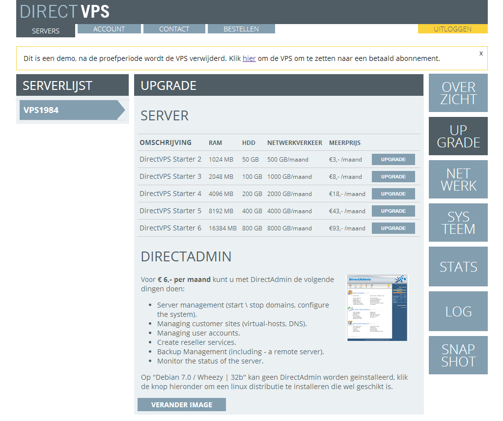 De volgende aanbieder van virtuele servers waarvan ik het controle paneel review is DirectVPS. Op ISPGids.com zijn recensies te zien van louter tevreden klanten. Dat roept de vraag op of het controle paneel van het bedrijf net zo goed is? Eerder beoordeelde ik het controle paneel van Strato met een ruime voldoende en dat van Argeweb met een onvoldoende. Hoe brengt het controle paneel DirectVPS het er vanaf?
