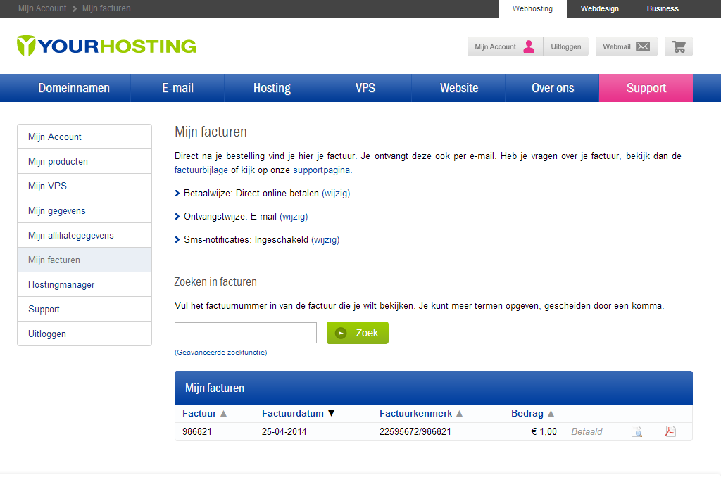 Administratief doet het controle paneel wat ik er van verwacht. De factuur staat netjes in het overzicht en is zowel online te bekijken en als pdf te downloaden. Daarnaast kan de betalingswijze worden aangepast van direct (online) betalen, overschrijving en automatische incasso. Ook kan worden bepaald of de factuur per e-mail of post moet worden verstuurd en is het mogelijk om een sms te krijgen bij een nieuwe factuur.