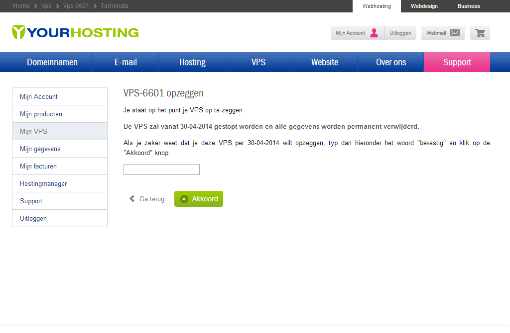De basis functionaliteiten zijn in het controle paneel van Yourhosting aanwezig. De aanwezige functionaliteit werkt naar behoren en is alles duidelijk uitgelegd in het controle paneel. Het ontbreken van mogelijkheden om backups of snapshots te maken of de server te laten monitoren is een gemis. Ook zijn de beschikbare statistieken over de server heel beperkt. Dat de opzegging soepel gaat is prettig, maar dat er in het controle paneel niet kan worden teruggedraaid is wel weer jammer. Het controle paneel van Yourhosting krijgt daarom een voldoende.