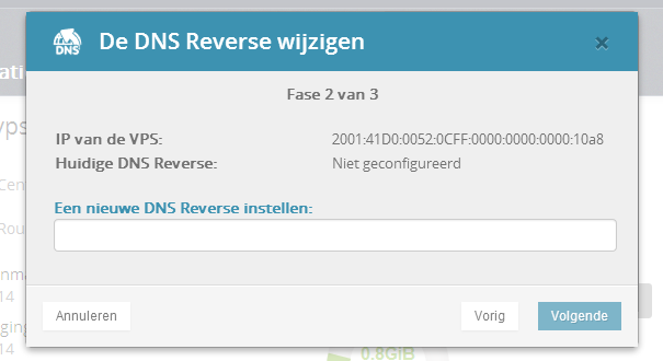 Het wijzigen van de reverse DNS is eenvoudig. Ik kan voor het IPv4- als het IPv6-adres van de server individueel de reverse DNS instellen. Het systeem controleert of het A/AAAA-record van de bewuste domeinnaam overeenkomt met het bewuste IP-adres en weigert indien dat niet het geval is. Het is niet mogelijk om extra IP-adressen aan te vragen met dit product, dat zou wel mogelijk zijn met de duurdere ‘VPS Cloud’ producten, meldt het controlepaneel.