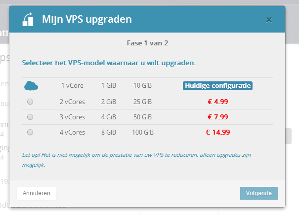 Er is in het controlepaneel de mogelijkheid om snapshots, backups en zelfs elke dag automatisch een backup te laten maken. Deze functionaliteit is niet beschikbaar op het type virtuele server dat ik review én zelfs niet bij te bestellen. Deze review gaat over ‘VPS Classic’ en de bewuste opties zijn enkel beschikbaar bij het product ‘VPS Cloud’.