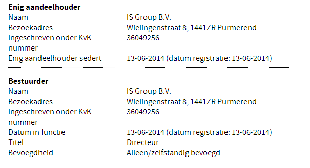 Een van onze bronnen meldt dat de overname afgelopen vrijdag officieel bij de notaris is vastgelegd. Uit gegevens van de Kamer van Koophandel blijkt dit inderdaad te kloppen. Sinds afgelopen vrijdag is IS Group B.V. enig aandeelhouder én bestuurder van WideXS B.V.. Dat verklaart ook waarom ik werd doorverwezen naar Jan-Willem des Tombe, die namelijk bestuurder is van IS Group en daarmee nu ook bestuurder van WideXS. Tot afgelopen vrijdag was WideXS eigendom van Nextstage Investment B.V. dat ook eigenaar is van ION-IP B.V. dat vermoedelijk niet is overgenomen door IS Group.