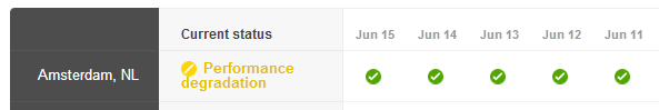 In een bericht op Twitter stelt het bedrijf op de hoogte te zijn van problemen met een upstream provider in Amsterdam. Op de statuspagina van Cloudflare staat bij Amsterdam enkel dat er sprake is van een “Performance degradation”. Verdere informatie over de storing of wanneer deze opgelost zal zijn ontbreekt. Klanten van Cloudflare – waaronder ook ISPam.nl zelf – hebben daardoor geen idee wanneer de storing volledig opgelost zal zijn.