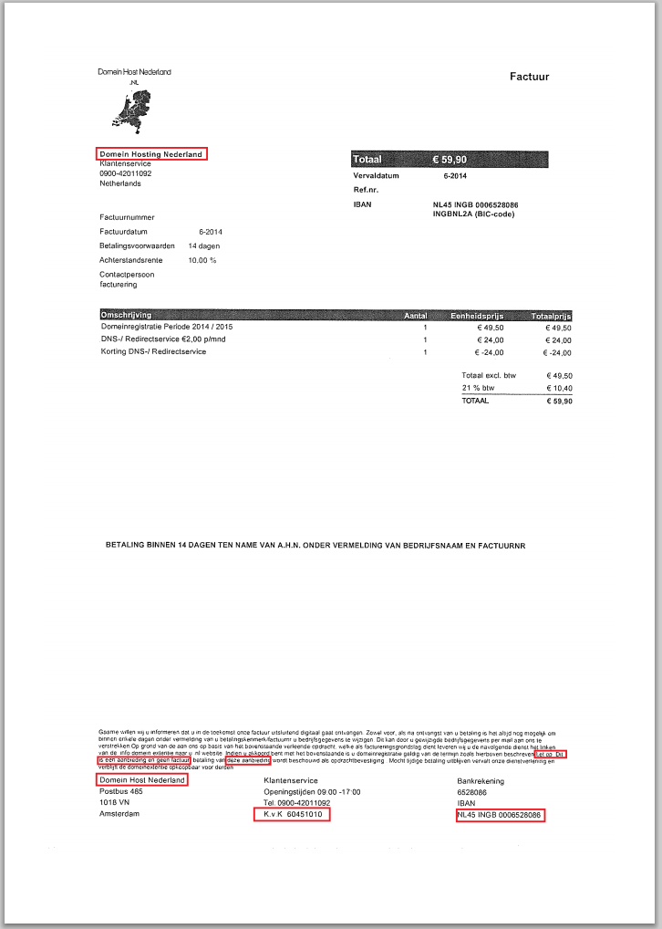 - Domein Hosting Nederland (KvK nummer 60451010 – foutief)