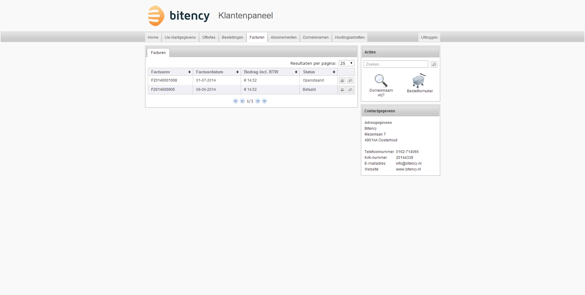Voor het administratieve beheer wordt er door Bitency gebruik gemaakt van WeFact. Daar valt weinig over te vertellen en dat doet wat het moet doen.