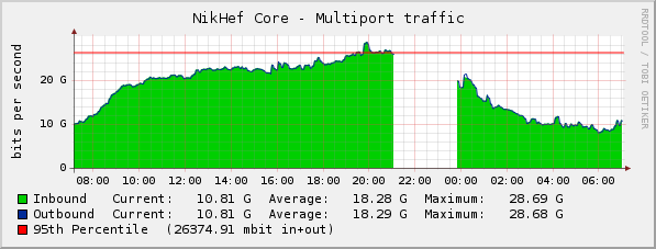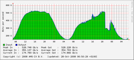 Gisteravond is rond 21:10 uur de stroom in het NIKHEF datacentrum uitgevallen. Als één van de oudste locaties van de Amsterdam Internet Exchange (AMS-IX) zorgde dit er voor dat de hoeveelheid dataverkeer die via de AMS-IX werd uitgewisseld met zo’n 210Gbit/s in elkaar zakte, van 510Gbit/s naar 300Gbit/s. Ook de tweede Nederlandse internet exchange NL-ix switches in NIKHEF staan. Het is onduidelijk in welke mate de NL-ix getroffen is door de stroomstoring, in de statistieken is te zien dat de NL-ix van 25Gbit/s helemaal plat gaat door de storing. Echter gezien de meting wordt verricht in NIKHEF, is dit waarschijnlijk niet accuraat.