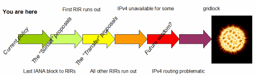 Rob Blokzijl, voorzitter van de RIPE community zij dinsdag tijdens de 57ste bijeenkomst van de Réseaux IP Européens (RIPE) in Dubai dat we kunnen stoppen met discussiëren of een markt voor IPv4-adressen onmogelijk moet worden gemaakt of gereguleerd. Feit is dat RIPE niet bij machte is om dat te doen. De markt voor IPv4 is daarnaast ook al een een feit zo stelde Blokzijl, waarmee hij volgens heise online het sentiment onder de RIPE community verwoorde.