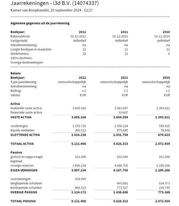 Dit keer bekijken we jaarcijfers van de Rotterdamse hostingprovider i3D.net (i3d B.V.) Het bedrijf is al tien jaar actief als hostingprovider en beheert inmiddels 8.000 servers in zestien landen. Een kleine kanttekening moet wel worden gemaakt. De bekeken jaarcijfers zijn die over 2012. Ze geven dus aan hoe het bedrijf er een kleine twee jaar geleden voor stond en bieden geen garantie voor de huidige staat van zijn.