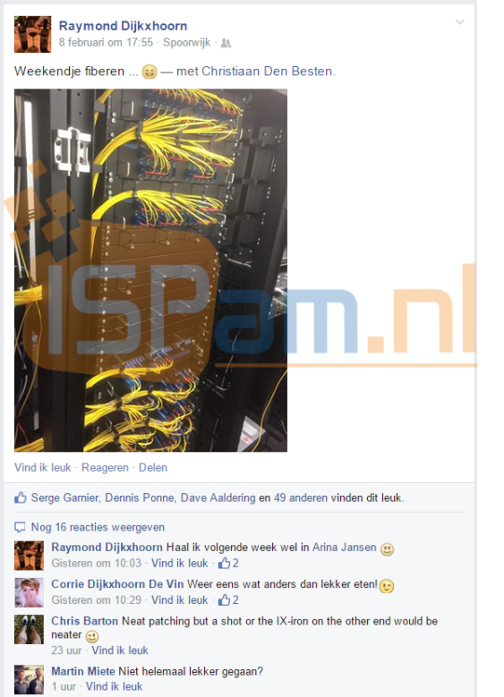 In een Facebook update schrijft Prolocation directeur Raymond Dijkxhoorn dat hij het afgelopen weekend bezig was met een”Weekendje fiberen”. Bij de status update plaatst hij een foto met wat lijkt op een patch paneel met de glasvezels van het bedrijf.