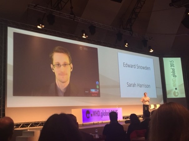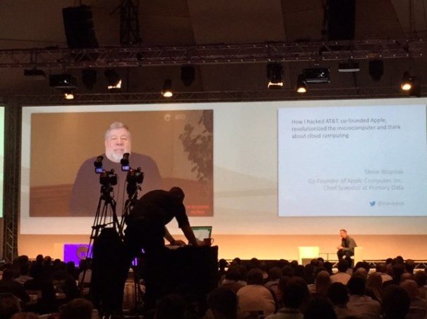 Steve Wozniak en Snowden. Maar een beetje jammer dat Wozniak via satelliet was. Niet alleen omdat hij niet live op het podium stond, maar ook omdat het hier een internetbeurs is en we wel een snellere verbinding mogen verwachten met de andere kant van de wereld.