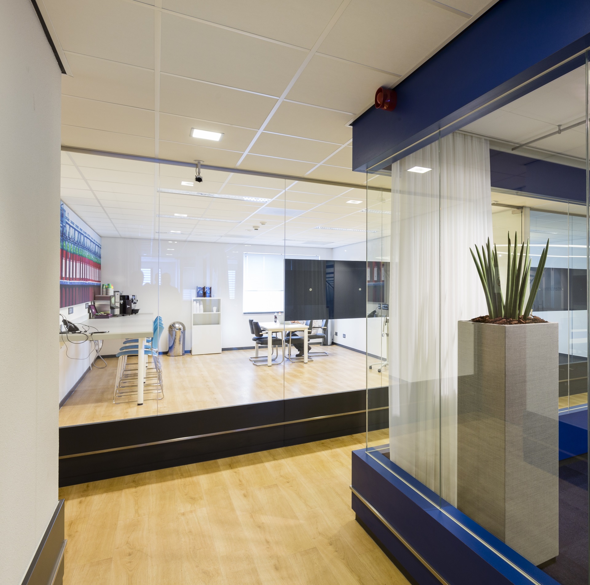 “Aanwezig zijn diverse vergader en kantoor faciliteiten waaronder werkruimte met WIFI, Jura koffieautomaten met verse bonen, heetwaterapparaten en cup-a-soup- en snoepautomaten. Daarnaast beschikken wij over een opslagruimte, auditorium en een bedrijfskantine waar de klanten gebruik van kunnen maken. Tevens beschikken wij over parkeervoorziening met oplaadpunten voor elektrische auto’s.”