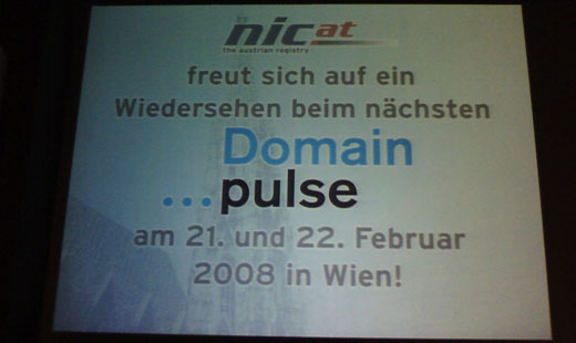 Daarmee kwam het daadwerkelijke programma van Domain Pulse 2007 ten einde en droeg Urs Eppenberger van SWITCH het Domain Pulse stokje over aan Richard Wein van nic.at, die volgend jaar verantwoordelijk zal zijn voor Domain Pulse 2008 dat in Wenen, Oostenrijk zal gaan plaatsvinden.