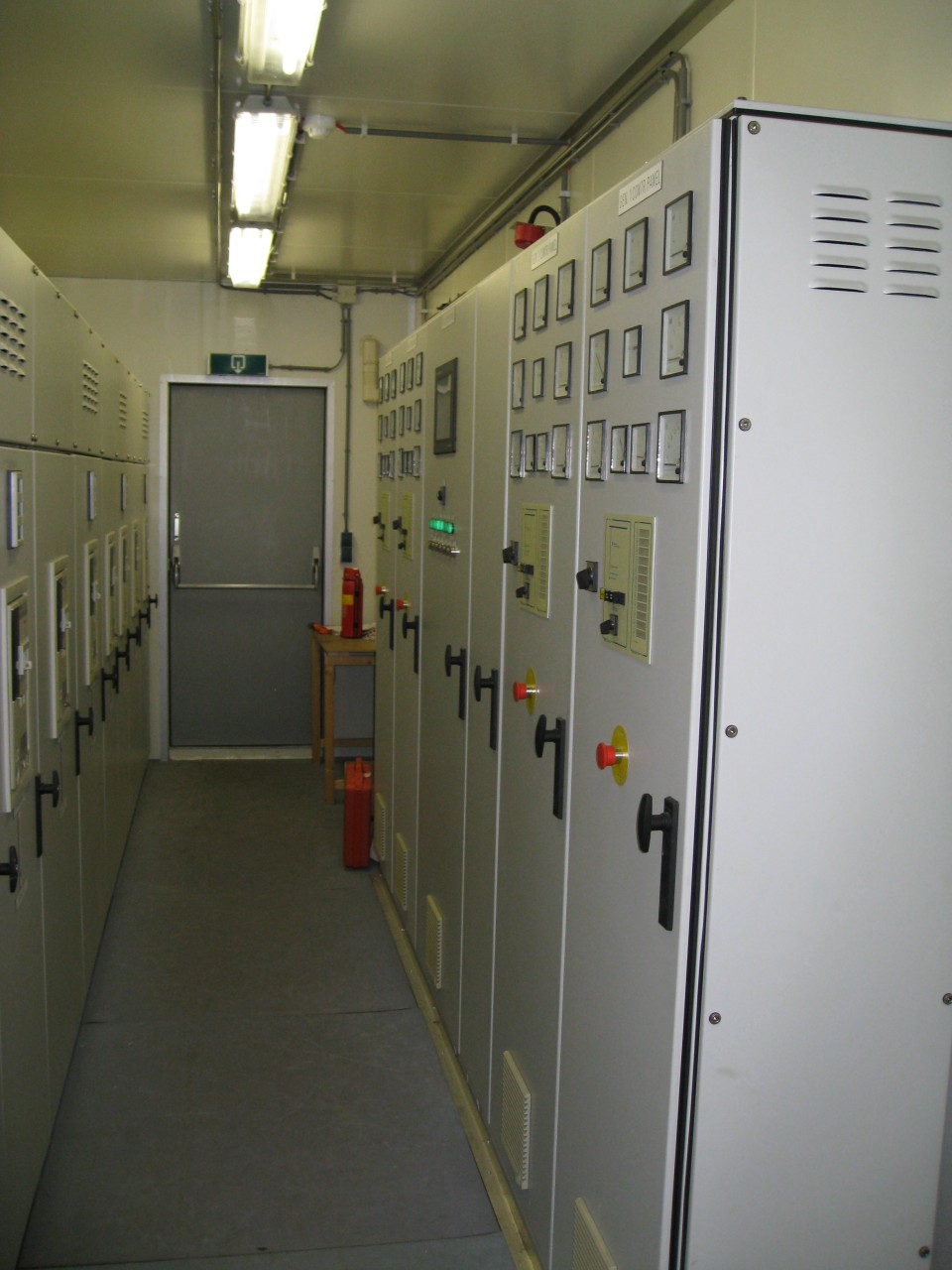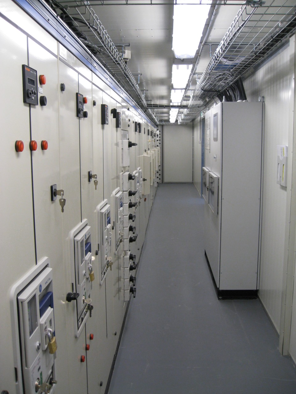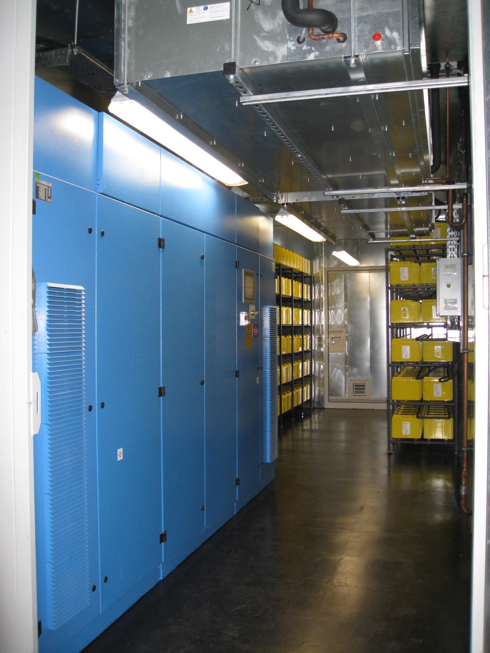 De binnenkant van één van de containers waarin de UPS-systemen staan opgesteld