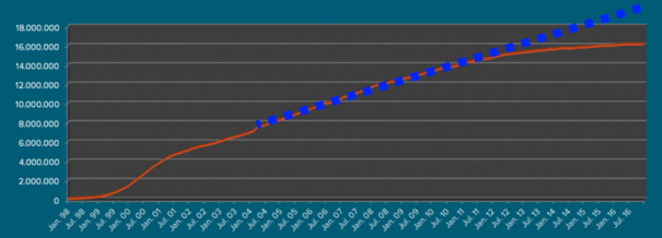 Wat ook interessant is, is hoe de collega’s uit België en Duitsland het doen. Wanneer we naar de statistieken van DENIC (.de) en DNS Belgium (.be) kijken, dan zien we een vergelijkbaar beeld als bij SIDN (.nl). Daar is de groei die in het verleden zichtbaar was er ook uit. In het geval van de Duitsers was dat ook in 2012 al het geval en bij de Belgen sinds 2014.