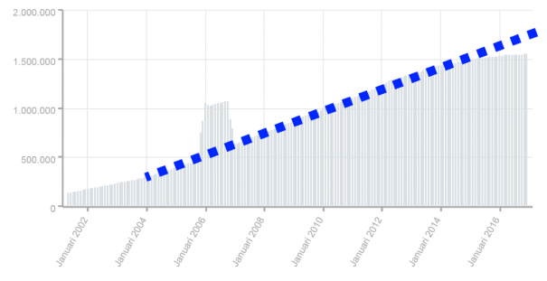 De nettogroei en het grote aantal nieuwe registraties zal natuurlijk een goede zaak zijn. Het laat zien dat het .nl-domein nog heel actief is. Echter neemt dat dus niet weg dat de groei van het .nl-domein nog steeds stagneert. Aan de ene kant is het zo dat het .nl-domein het dus goed doet, aan de andere kant groeit het nauwelijks meer. De stelling dat 2016 een goed jaar was, mag wat mij betreft met een schep zout worden genomen.
