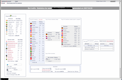 Via de weblog van anti-malware bedrijf Panda Software krijgen we een kijkje door de ogen van een botmaster. Een onderzoeker van het bedrijf ontdekte tijdens een onderzoek naar een trojan een controle paneel genaamd Zunker waarmee botnetwerken kunnen worden beheerd.