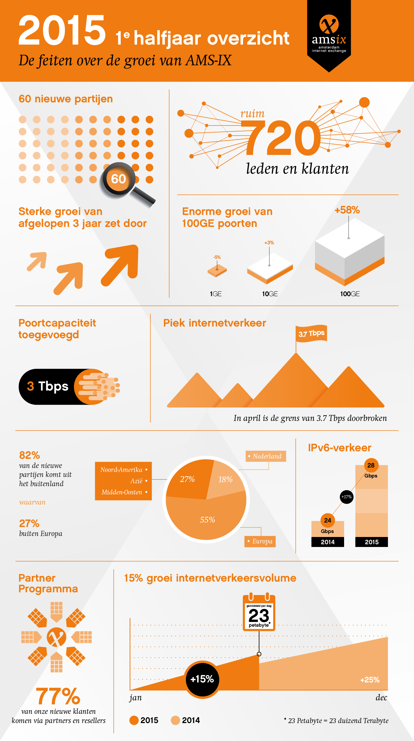 Meer feiten en cijfers over AMS-IX in de eerste helft van 2015 vindt u in onderstaande infographic.