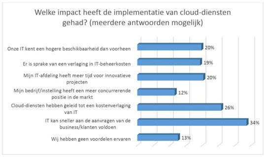 De implementatie van cloud-diensten biedt de IT-afdeling ruimte en mogelijkheden om werkzaamheden anders in te richten dan voorheen. De IT-afdeling heeft hierdoor niet alleen meer tijd om innovatieve IT-projecten op te pakken, maar ervaart ook een hogere beschikbaarheid dan voorheen. De flexibelere schaalbaarheid door de inzet van cloud-diensten en de toenemende beschikbaarheid zorgen ervoor dat IT effectiever kan bijdragen aan het behalen van gestelde bedrijfsdoelstellingen.