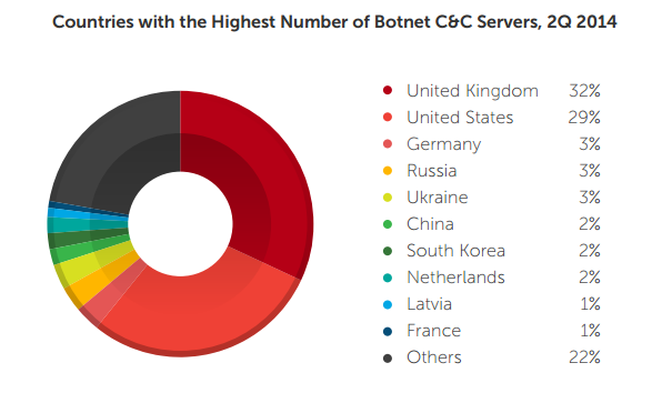 Naast dat Nederland in het rapport wordt genoemd als een van de landen met de meeste botnet-connecties, staat Nederland ook in deze top 5 als het gaat om het grootste aantal Botnet Command and Control (C&C)-servers.