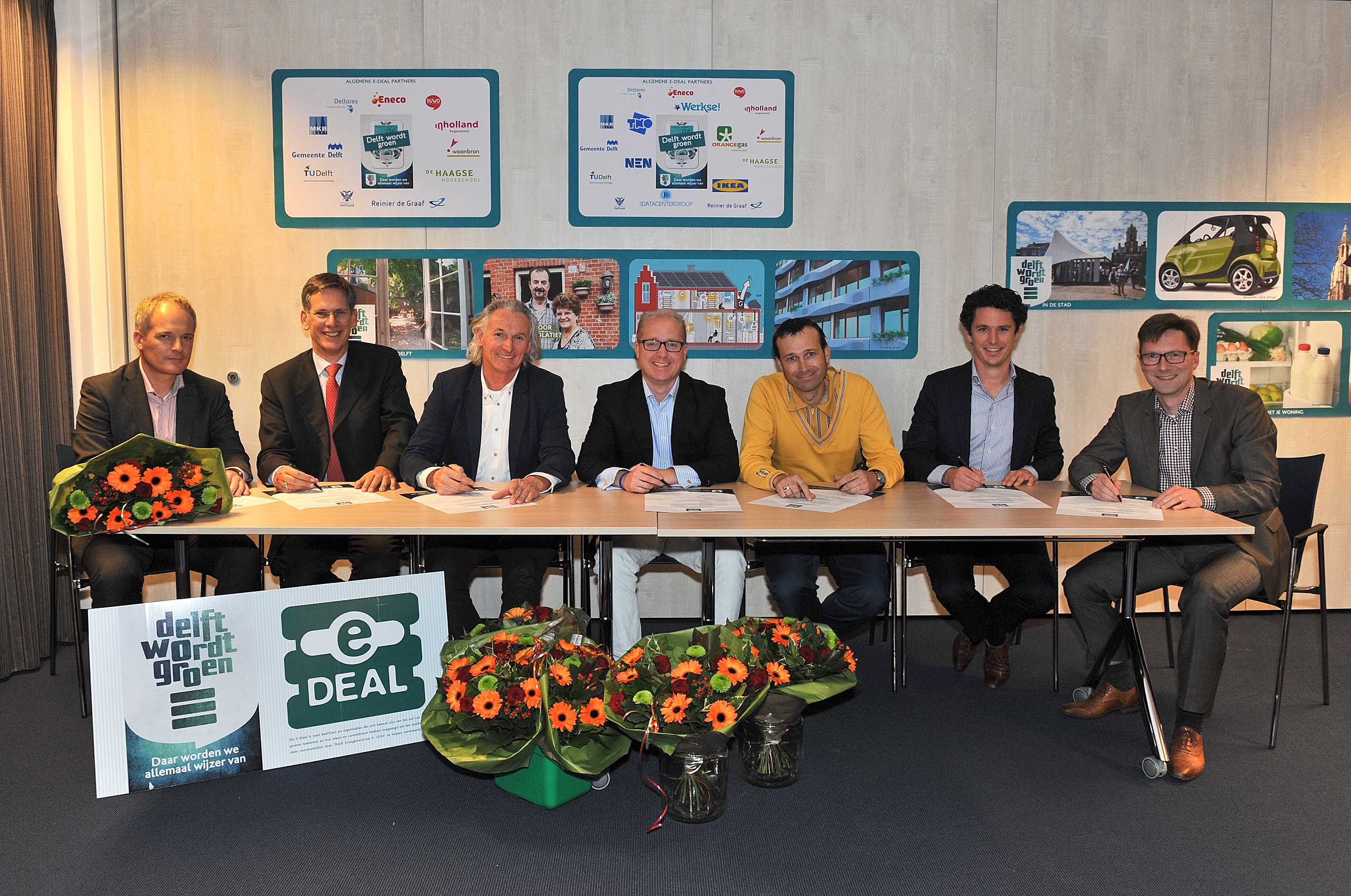 Deze belofte heeft The Datacenter Group gedaan in de vorm van een de e-Deal. Namens The Datacenter Group tekende algemeen directeur Siemon van den Berg het groene document en spreekt zo met de gemeente af dat het datacenter zich gaat inspannen voor vermindering van de CO2 uitstoot. Hoe? The Datacenter Group gaat zich inzetten op energiebesparing, duurzame productie van energie en intelligente energiesystemen. Ook IKEA Delft, NEN, OrangeGas, TNO en Werkse hebben de e-Deal deze dag ondertekend.
